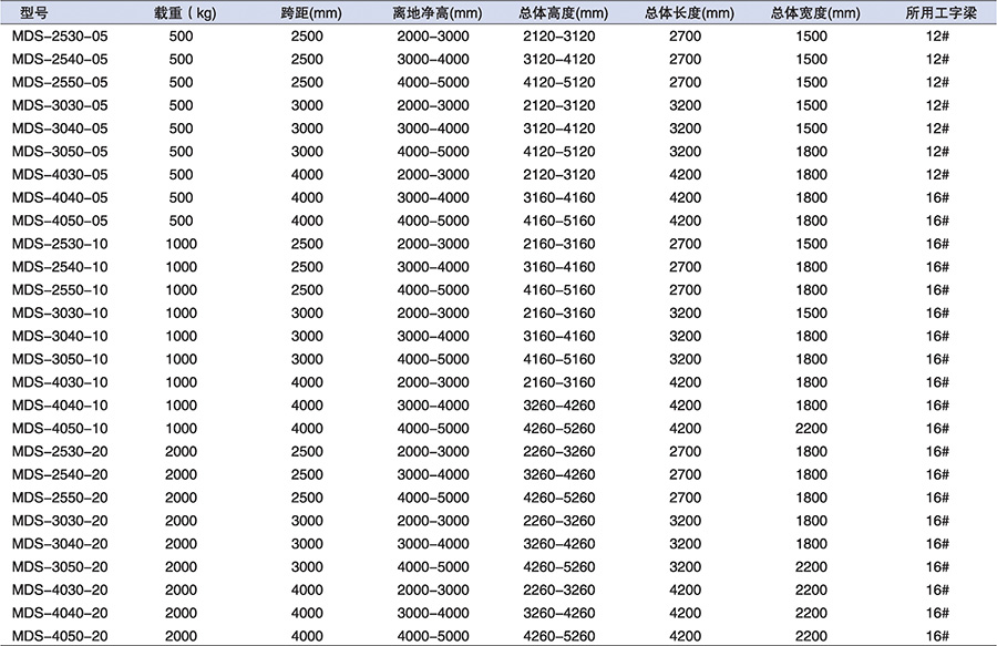 ● 橫梁為工字梁,可選配移動小車、手拉葫蘆、電動葫蘆等。
